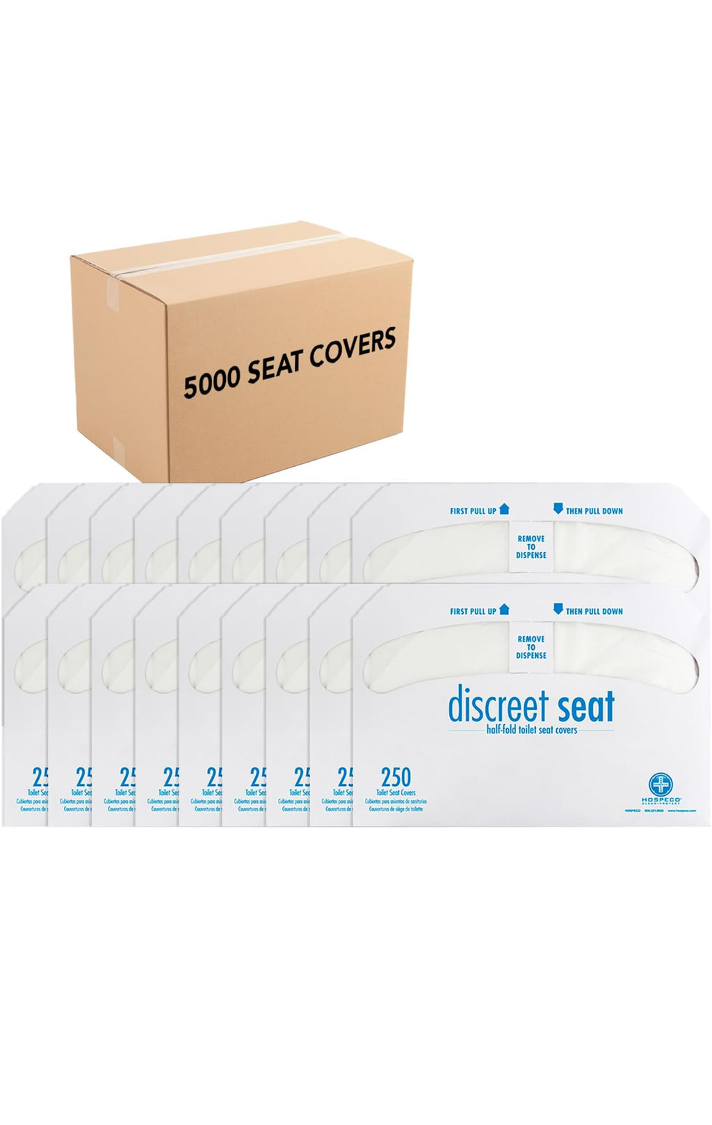 HOSPECO Discreet Seat Half-Fold Toilet Seat Covers, 14.25 X 16.5, White, 250/pack, 20 Packs/carton